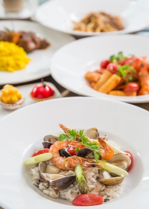 平日一到五可前往享用「COVA精選午間輕食」與「COVA晚間套餐」,午間輕食套餐提供四樣主菜任選一,其中包含《米蘭紅花燉飯佐燉牛膝》、《波托菲漁夫海鮮燉飯》、《西西里風味鮮蝦水管麵》和《波隆那肉醬鳥巢麵》,另外附贈現榨時令蔬果汁,而晚間套餐則有《義式開胃集》和《餐前菜》、主菜《米蘭紅花燉飯佐燉牛膝》《米蘭風味炸小牛排》《番茄鮮蛤燴煮鱸魚配洋芋及檸檬蛋黃醬》,任選蛋糕一片及咖啡與茶。
