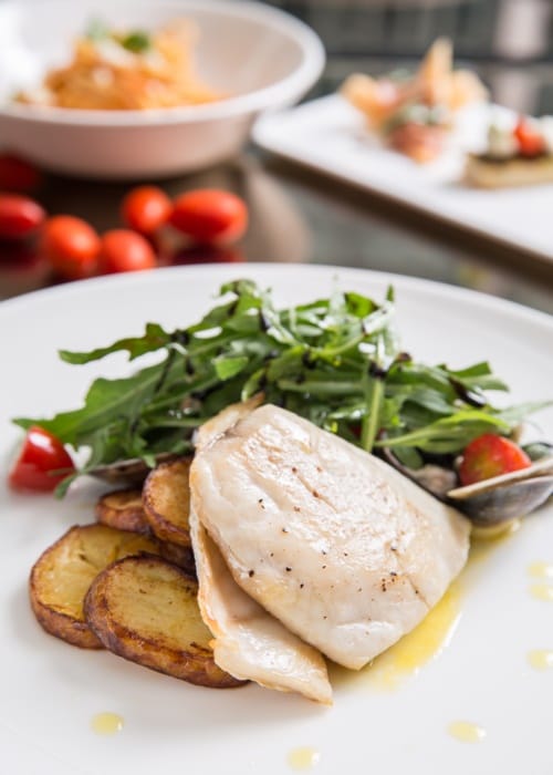 《米蘭紅花燉飯佐燉牛膝》為COVA的經典料理,午間與晚間套餐裡都看到它,以牛高湯熬煮小炒的番紅花燉飯,如向日葵般的黃色米飯與濃厚的帕瑪森起士完全緊密入味,保有米心刻意不煮透的義大利燉飯口感,一旁的牛膝則為主角,番茄與些許酒香的調和,牛膝燴煮不至太軟爛,和番紅花燉飯一起入口,義大利人所稱之的美味,盡在不言中。