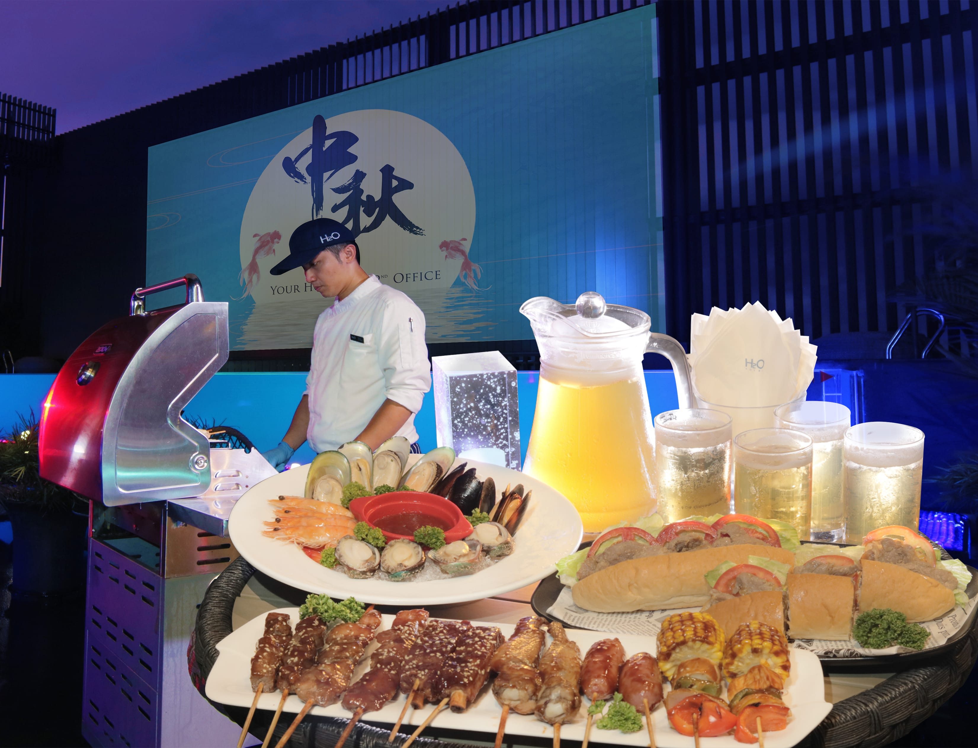 中秋節另一重頭戲就是家家戶戶的烤肉香,擁有高雄唯一高空泳池夜店吧的H2O Hotel,即日起至9月30日推出「中秋歡樂分享餐」多種美味燒烤、海鮮拼盤及沁涼啤酒,除了有廣受好評的碳烤豬肋排、骰子牛及燒肉潛艇堡之外,還有滿滿在地味的烤香腸及烤小卷,由H2O Hotel為您現點現烤。共享迷人秋夜後還意猶未盡嗎?選擇「暮秋菊月一泊二食住房專案」讓貴賓在夜店吧享用完星光燒烤拼盤及飲品後也能體驗高雄秋夜的景色,悠閒來個輕旅行正是時候!