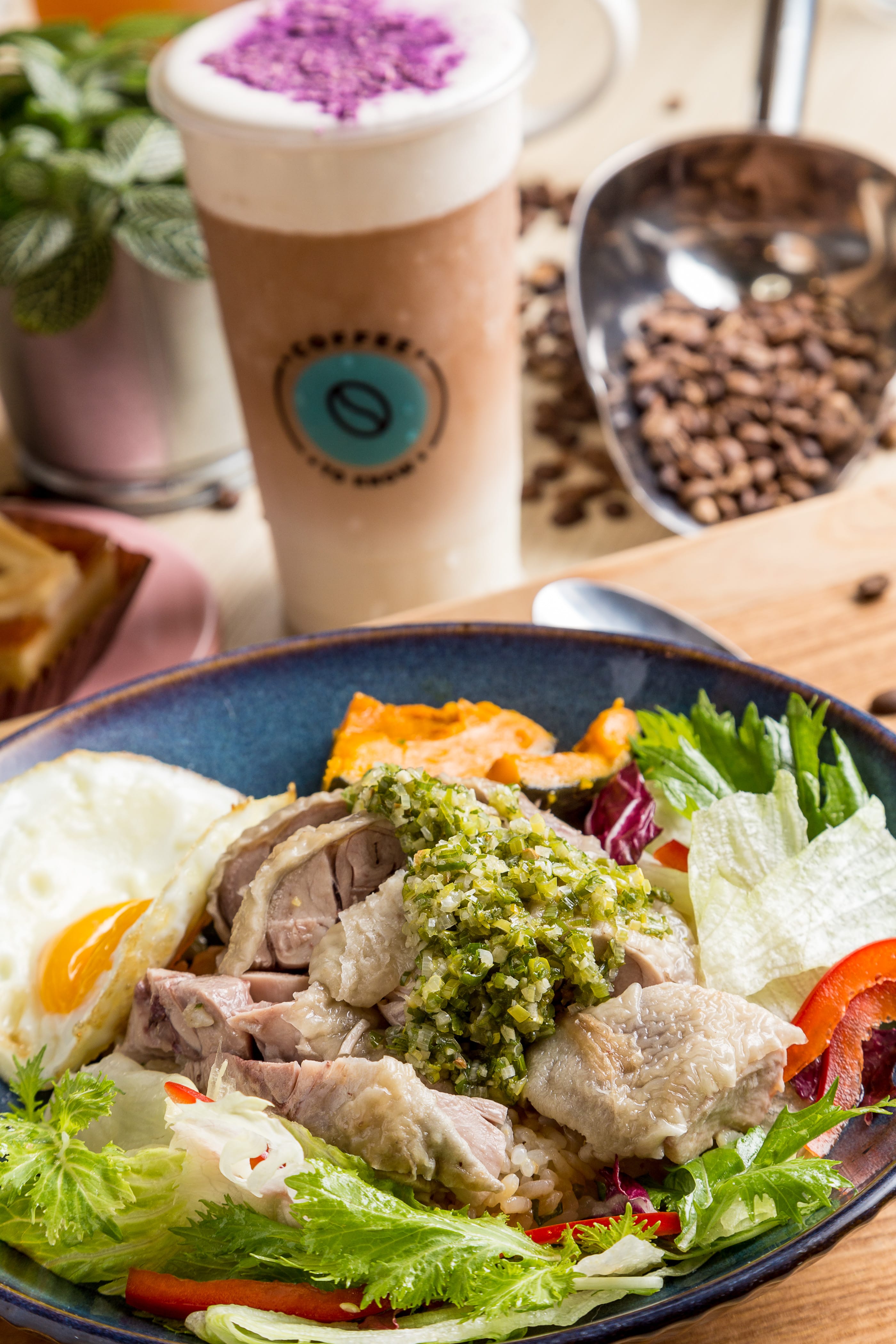 舒適明亮空間,Tiffany藍牆面格外清新,位於南京東路商圈的「咖啡知道」,其客製化烘豆特調,甫一開幕就深深擄獲上班族味蕾,更成為日本遊客口耳相傳在台必喝、外帶飲料,尤其超厚奶霜、1公升莊園咖啡系列最吸睛,還有主廚級義法料理、庇里牛斯包及甜點同樣讓人讚不絕口。TEXT_Aries Huang PHOTO_盧大中
