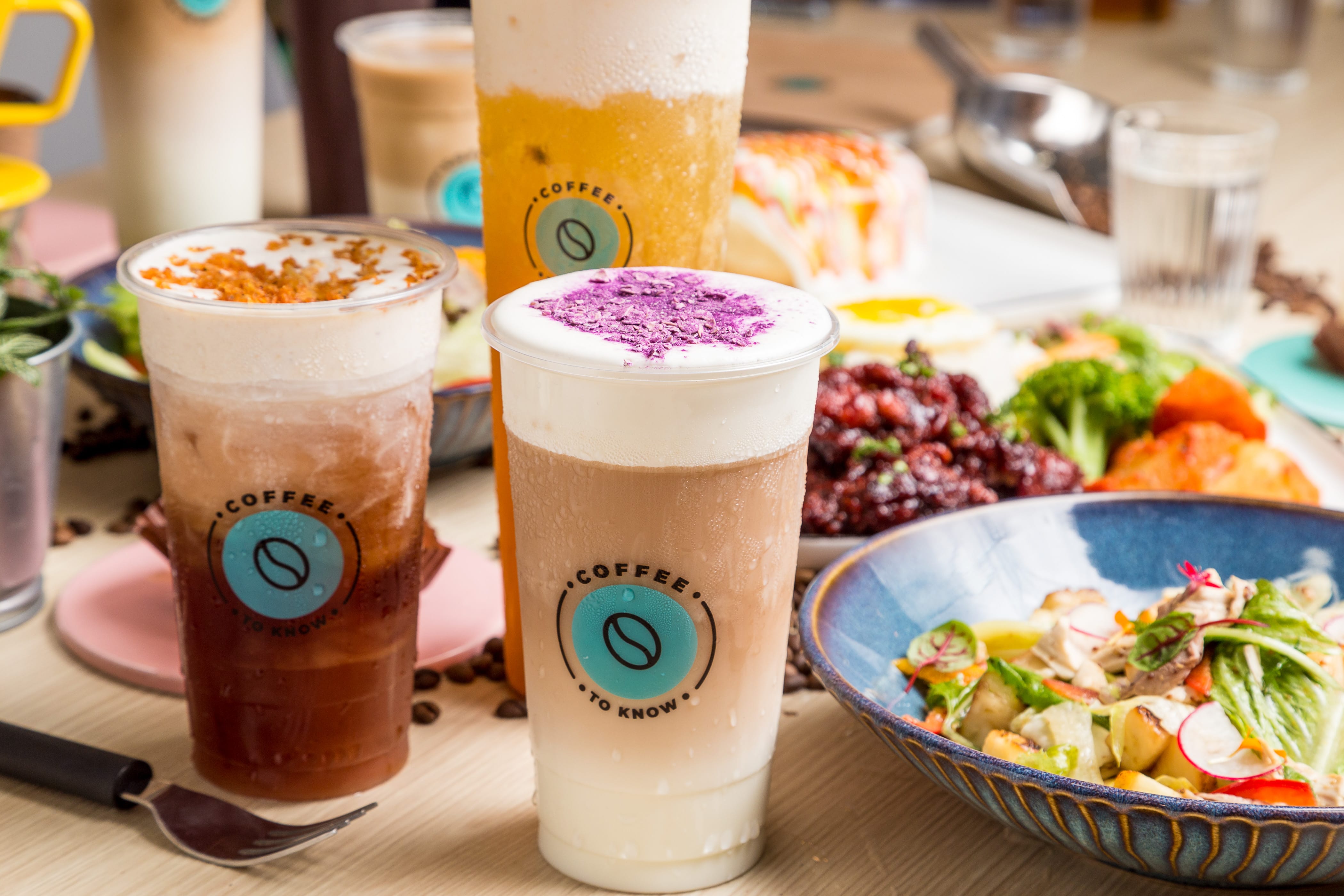 除了拿鐵、卡布奇諾或摩卡等日常咖啡外,「咖啡知道」發揮創意提供多元品項選擇,帶來更多口感驚喜。喜歡粉圓嚼勁,可以加點珍珠,或是加入來自台南白甘蔗的甘蔗黑咖啡、甘蔗咖啡拿鐵,以健康的甘蔗取代傳統糖分,喝起來無負擔。加上泰國椰奶的椰奶咖啡拿鐵,椰奶能打出比一般牛奶更為綿密細緻的奶泡,香氣濃郁,更能提出咖啡風味。微帶辛辣的肉桂老薑咖啡拿鐵,結合肉桂、老薑、巧克力與咖啡,多層次風味、獨一無二。
