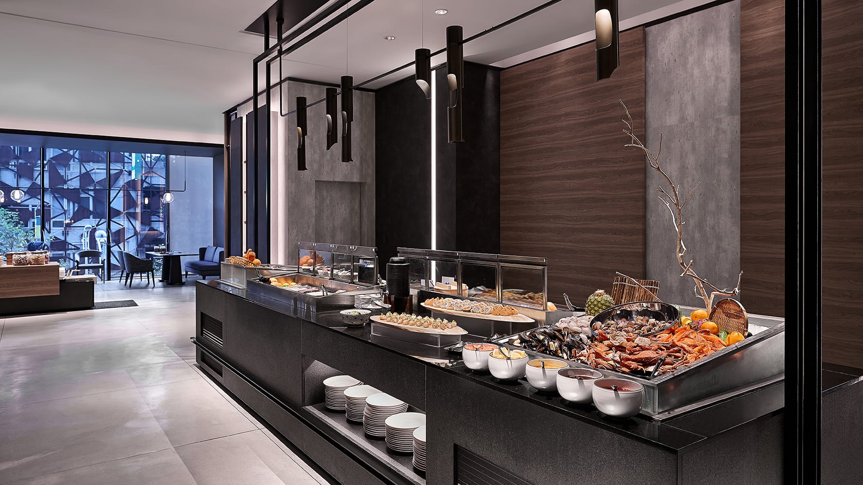 館內MU TABLE 自助餐廳以從產地到餐桌的概念為烹調特色之一,善用小農們蔬菜水果,如在地溫泉絲瓜、溫泉空心菜、等為料理食材,豐富呈現在MU TABLE的餐台區,更可吃到姊妹飯店的美食。如台北喜來登牛肉麵和寒舍艾美酒店的家鄉雞肉飯,一次集結所有寒舍集團的最強美食組合。