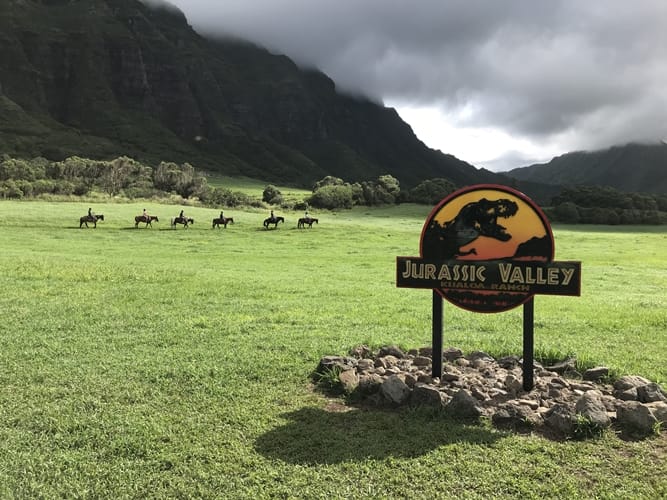 如果您曾看過電影《侏羅紀公園》,那麼對於恐龍在山谷中奔跑攻擊人類的畫面一定印象深刻,這裡是歐胡島的古蘭尼牧場(Kualoa Ranch),除了是電影《侏羅紀公園》的取景地,同時也是許多電視節目和好萊塢電影的拍攝場地,像是《珍珠港》和《 哥斯拉》以及美國影集《Lost》和《天堂執法者》等,都在這裡取經拍攝。