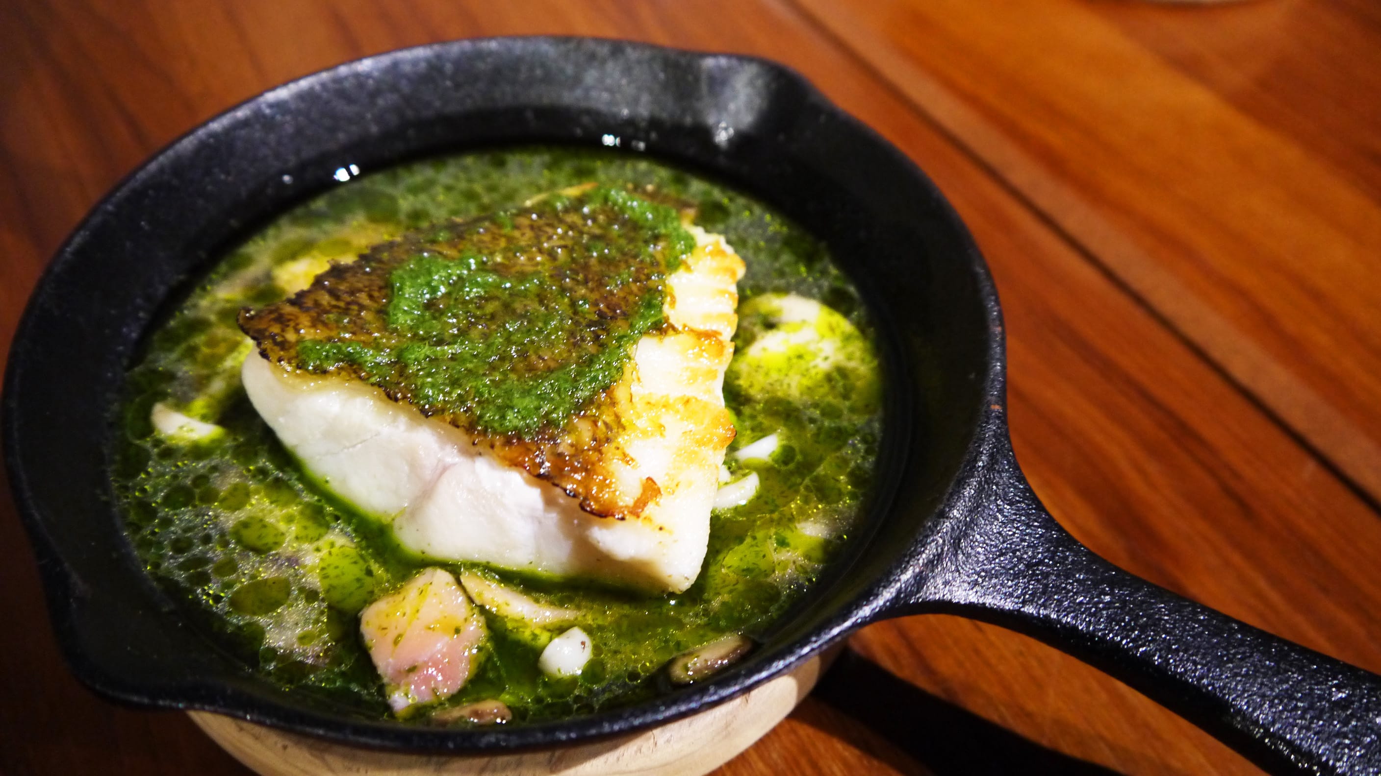 這次行政主廚帶領團隊研發一道道美味滿分的鑄鐵鍋料理,例如: 肋眼牛排佐白蘭地綠胡椒醬,選用優質美國肋眼牛排搭配帶有白蘭地香氣的綠胡椒醬汁,在熱騰騰的鑄鐵鍋上品嘗冒著熱煙香氣四溢的牛排,無論視覺或味覺都是絕大享受,另外WINE-derful的龍虎斑料理也是不能錯過,採用屏東擁有產銷履歷膠質豐富的龍虎斑香煎過後,佐上煙燻鮭魚、歐芹以及蒔蘿調成的清新醬汁,帶出龍虎斑的鮮甜與Q彈,以鑄鐵鍋保留溫度的特色更是鎖住龍虎斑的鮮香。紅酒燉羊膝是冬天搭酒的必吃美食,濃郁的紅酒醬汁搭配燉煮軟嫩的羊膝,一口咬下肉香四溢瞬間驅散冬天的寒冷,帶給您滿滿幸福感。