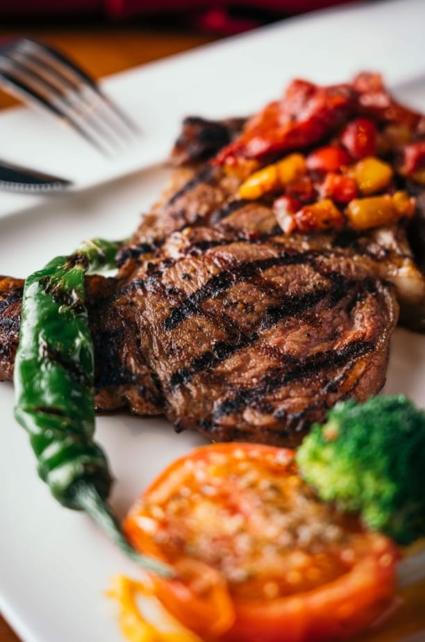 來到「WINE-derful」絕對必點的就是牛排了,主廚每次以新做法、創新醬汁帶來獨特風味。新一季的新菜色,特選美國安格斯牛排,採用源自於西班牙的巴斯克牛排( Basque Steak )的作法,先將整塊牛排以紅酒、蔬菜,加上些許鹽、黑胡椒調味醃製約15分鐘以上,牛排放入鍋中煎,不需再加任何調味,微焦表皮再搭配風乾蕃茄、洋蔥及青紅椒等,有著質樸的鄉野本色,略帶嚼勁口感、肉香四溢,非常夠味!