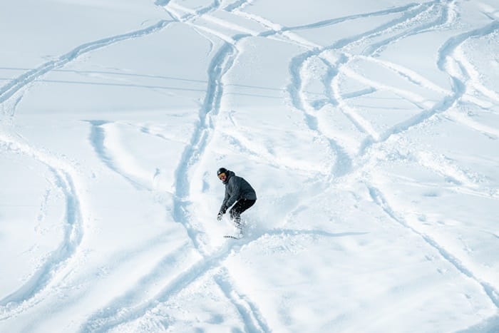 如同流星般風馳電掣地劃過,帶著節奏般地左右搖擺,雪板與雪地摩擦,刮起陣陣雪浪,隨著雪地起伏而上下漂浮。滑雪猶如用雪板在大地作畫,在雪地上劃出長長的線條,有直有彎、時粗時細,每位滑雪者都可以創作出專屬於自己的作品。