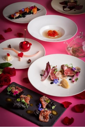 迷人夜景及浪漫氛圍的馬可波羅義大利餐廳是戀人約會首選,若想在這天安排驚喜求婚,馬可波羅餐廳高樓環景的求婚桌是您不敗的秘密武器!義大利籍主廚法比歐(Fabio Strammiello) 精心設計經典六道式風味套餐,將戀人們相識相戀逐漸升溫的愛情歷程用道道美饌表達,包含芝麻鮪魚墨魚脆片、花蟹番茄清湯、甜菜根鴨胸、波士頓龍蝦墨魚義大利麵,而主餐可依個人喜好選擇菲力牛排或伊比利帶骨豬排或加拿大黑鱈魚或香煎挪威鮭魚或波士頓龍蝦。餐後甜點荔枝香檳雪酪更發揮巧思以嬌紅鮮嫩的紅蘋果造型象徵“You Are the Apple of My Eye 妳是我眼中的蘋果”對情人傾訴自己真摯的心意。情人夜當然少不了催化浪漫的美酒相伴,享用情人節套餐可優惠加價NT$1,280+10% 享用馬可波羅酒廊的情人節限定特調三杯 (愛情來得太快、戀愛密碼及愛情靈藥)。在高樓環景與現場音樂表演的浪漫氣氛中,用道道美食佳釀感受彼此愛戀!2月11日前預訂情人節套餐還可享9折早鳥優惠!耍浪漫動作要快!