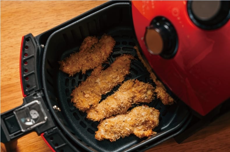 2. 雞柳條放入「Karalla 健康氣炸鍋」,設定200 度、8 分鍾。註:想要更酥脆的油炸口感,可在放入氣炸鍋前,噴灑一些油。