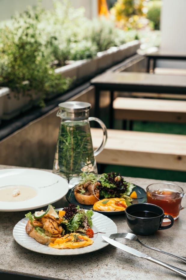 翌日免費享用主廚特製早餐料理,有燻鮭魚、嫩煎雞肉、素食等口味,點綴現摘香草植物,搭配濃湯、咖啡與紅茶,不過度烹調、講究營養均衡,開啟活力一天,可以隨性於大廳、房間內或公共的戶外陽台享用,很自由地。無論閒坐大廳或是室外,開放式的露台,只見濃濃綠意,香草植物淡雅飄香,格外愜意自在,來上一杯特調飲品就更棒了。午後時光或是浪漫夜晚,旅店於下午3:30至晚上10:00,提供義式咖啡、茶、可可、調酒及糕點,由專業法式甜點師傅專門為旅店量身打造的古典雞尾酒OldFashioned、莫希托Mojito、日出龍舌蘭、威士忌酸酒、長島冰茶等,享越夜越美麗微醺的滋味。