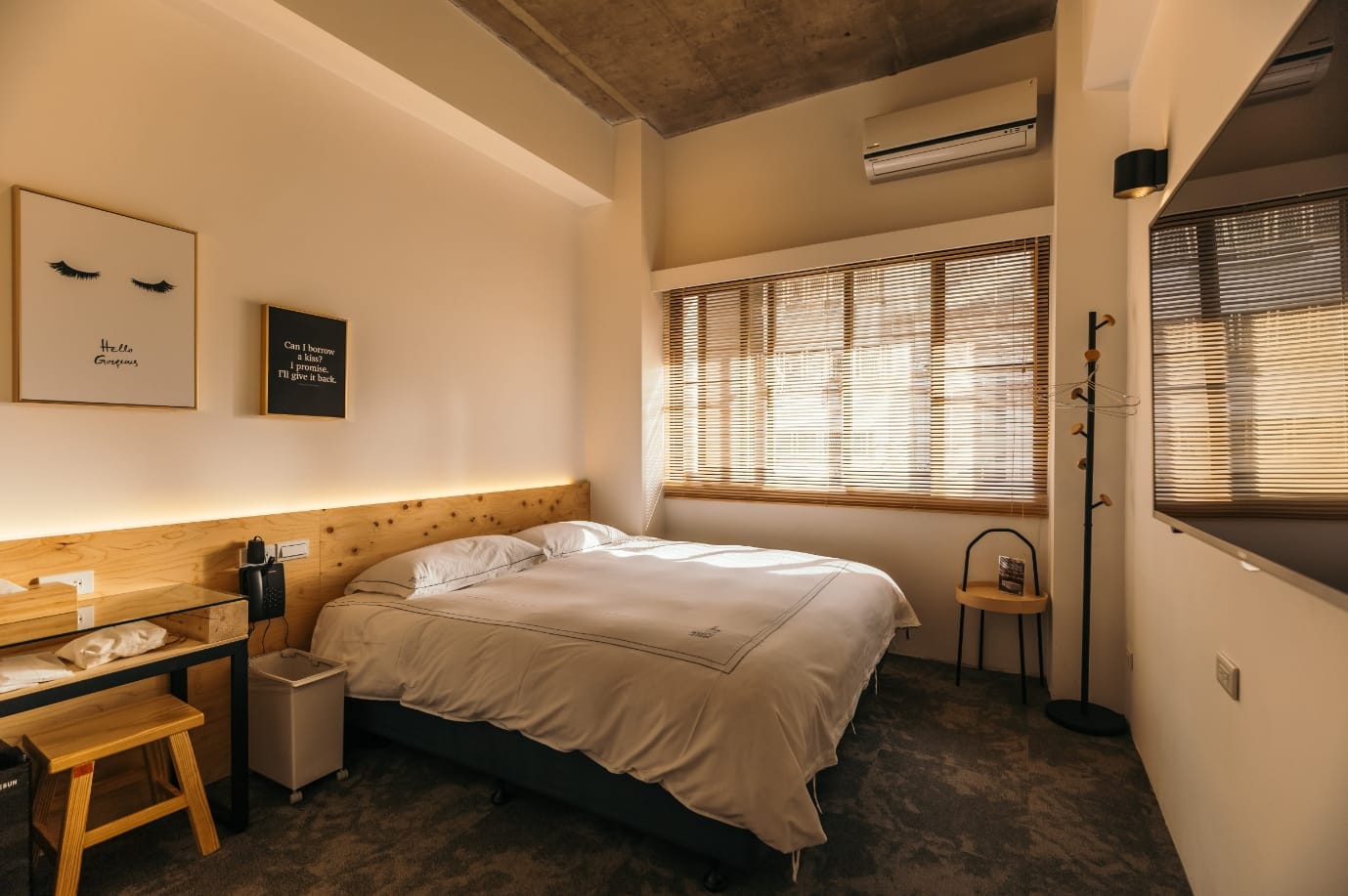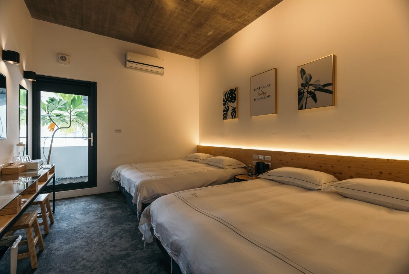 圍繞著天井,不設限的場域,通透感貫穿室內外,一入「嬉.行旅」,空氣自由穿梭,光影自然流動,而大尺度的留白,飾以文字「嬉」的說明,又是最吸睛的拍照打卡點。「嬉.行旅」是小西城旅店、植光花園酒店集團旗下第三間飯店,執行長說從停車場、大廳到每個樓層的走道,旅店最多的裝飾品就是窗戶,引入陽光和流通的新鮮空氣,讓人更加安心的享受這份優雅與舒適。