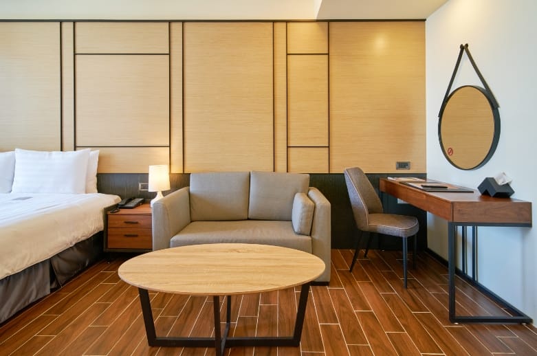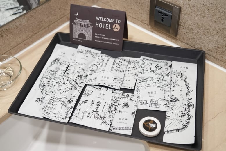 「Hotel A聖禾大飯店」門面外觀融入在地元素,參考台南古城門的設計,從接待大廳、客房以及公共設施,不做過度裝飾,簡單簡約、明亮潔淨。145間客房有9種不同房型,可以滿足不同的差旅需求,落實「Hotel A」的「A」,就是Quality,亦代表最好的品質。飯店最大特色,就是結合台灣最好的企業品牌,將其品牌理念落實在觸動人心的細微之處,如床墊使用德泰彈簧床,軟硬適中,賦予優質睡眠品質。同時推廣對人體與環境都友善的理念,在洗沐備品選擇上,跳脫傳統講究奢華、香味或是進口品牌迷思,選擇與主張永續、純淨、科學保養,亞洲唯一連續四年蟬聯「對世界最好」大獎的B型企業「綠藤生機」合作,這是「綠藤生機」第一次與商務飯店合作,在「Hotel A」就可以享受「綠藤生機」沐浴乳和洗髮精所帶來的純淨旅程,自然清新。還有在客房內也使用了「泰山」的環保瓶裝礦泉水以及「生態綠」公平貿易咖啡,讓旅行時的一杯咖啡,也可以喝得很有意義!有趣的是,注意看飯店所使用的備品外包裝,有一定的排列,原來是1752年台南的古城池地圖,包括大小、東西南北門,「Hotel A」的巧思就是希望每位來到府城遊玩的旅人,可以多多認識這個城市。
