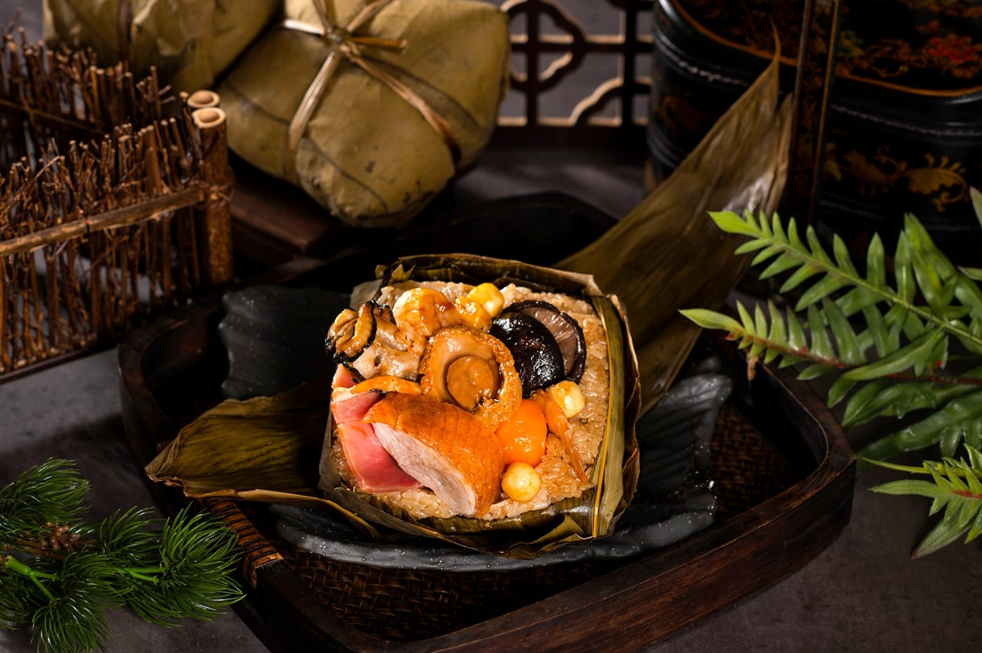 香格里拉集團旗下名廚們聯手推出之廚神系列肉粽之一。正宗廣式裹蒸粽的極致奢華升級,以廣式裹蒸粽為基礎,再加入六頭鮑魚、增加鮮香醇風味的蠔乾及帶松茸濃郁的牛肚菌等頂級食材。適合四至五人分享,為大師等級的奢華首選。