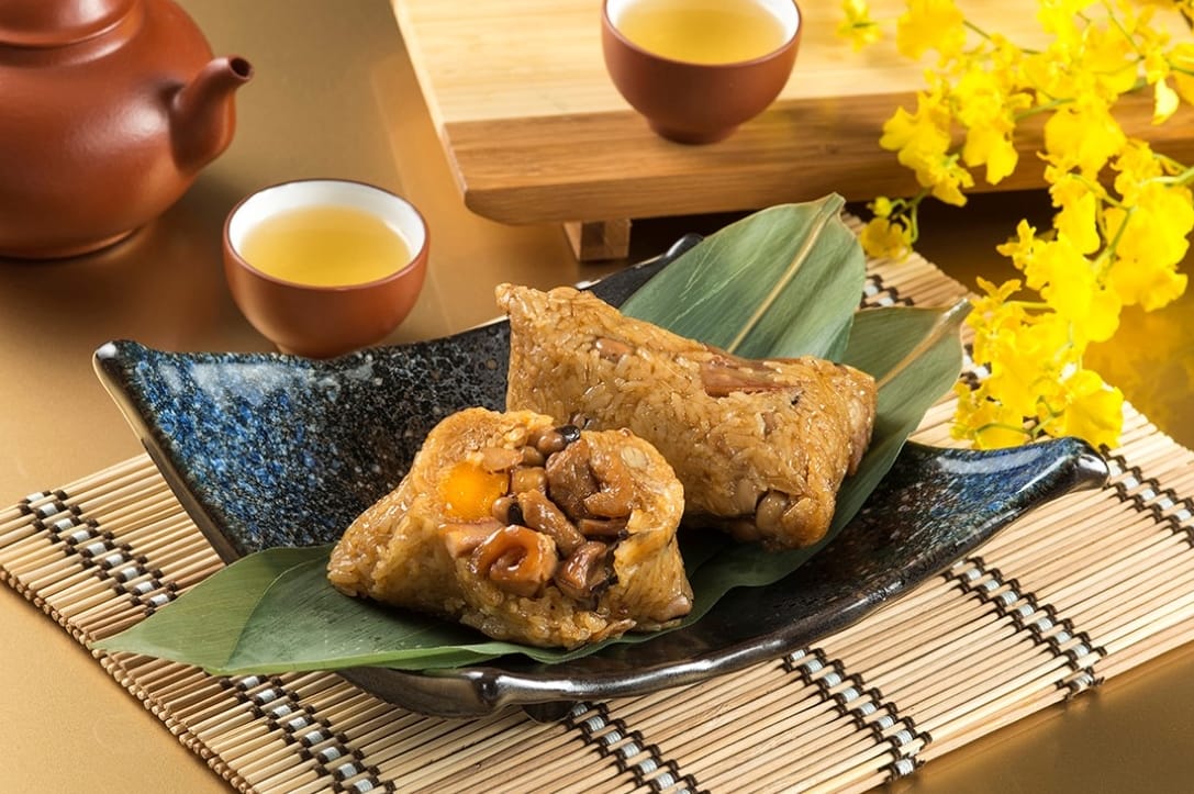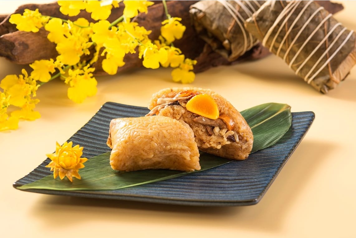 包粽,包中!集結「長壽、富貴、康寧、好德及善終」五大福氣的五福粽為佳節祝福,採用開陽、花菇、鹹蛋黃與魷魚及台灣在地優質豬五花肉等上選食材為鹹香糯口的飯粒更添風味,豐盈飽足的經典粽香精彩盡獻。