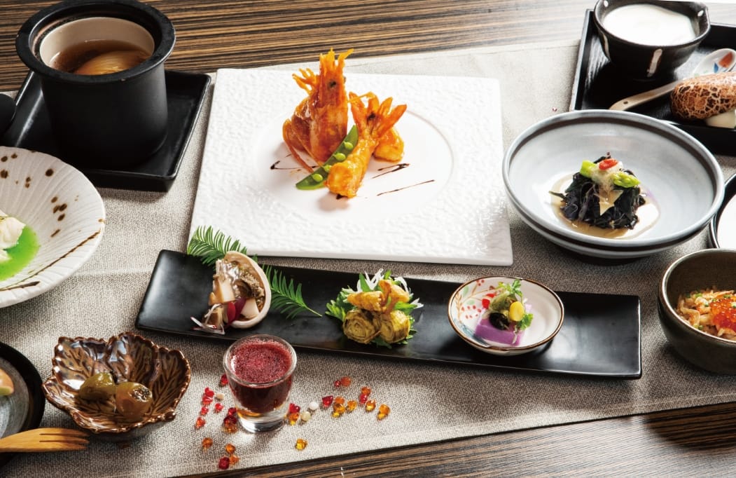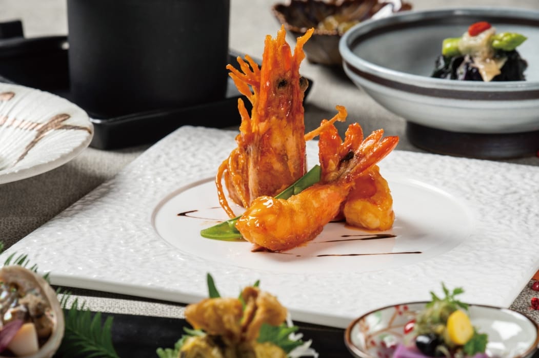 少帥禪園在上世紀60年代曾經是張學良與趙四小姐被軟禁之處,張學良最終以101歲的高齡逝世,他的飲食習慣也成為研究其長壽原因的重要線索,少帥尤其喜愛海鮮,幾乎日日有魚蝦,來到台灣之後更容易取得海鮮,遂成為他在飲食上的重要習慣。少帥禪園內的漢卿美饌餐廳,規劃有少帥私房套餐、四小姐鱻食套餐、大帥府傳套餐、禪鮮素食套餐,以及小朋友專屬的小太子行軍餐,並依據季節變化,將菜色進行適合時令的調整,目前夏季菜單已經推出,讓我們一起品嚐少帥私房套餐的獨特美味。從第一道開胃前菜的「長壽三寶」開始,可感受到主廚在顏色上的用心配置,淺紫色的山藥豆腐映襯出清爽色系,就此展開夏季套餐的序幕。上述提到,張學良愛吃海鮮,蝦與魚是他的最愛,清蒸料理的龍虎石斑,最能吃出魚肉的新鮮和肥嫩,來自南部無毒養殖的龍虎石斑,是龍膽石斑與虎斑的交配品種,肉質結合了兩種石斑的優點,口感鮮美且絲毫無負擔感,非常適合夏季食用。少帥最愛蝦,甚至連宵夜都要吃蝦,可見他對蝦肉的鍾情,該套餐的草蝦採用乾燒方式料理,醬汁入味卻不油膩。