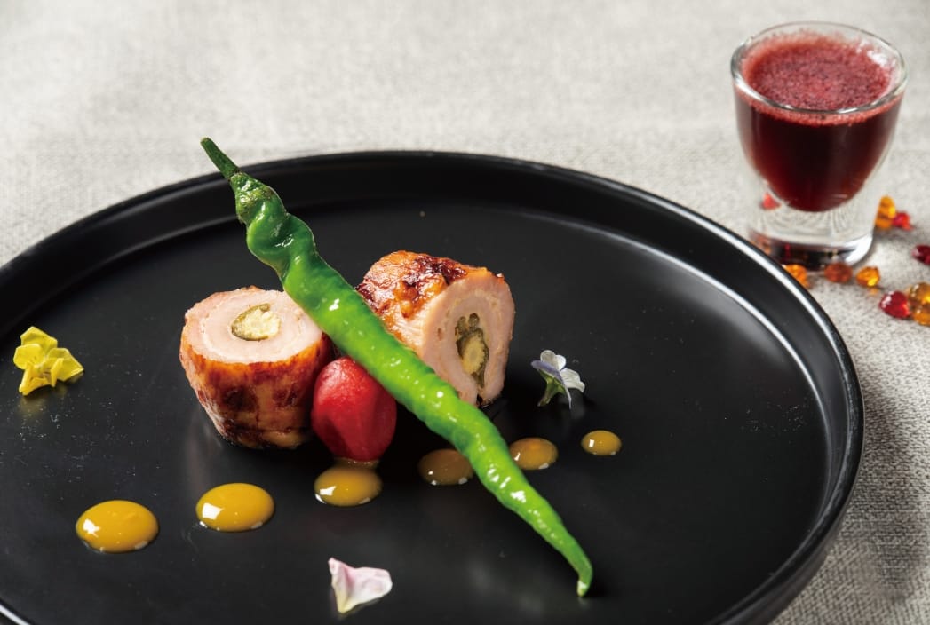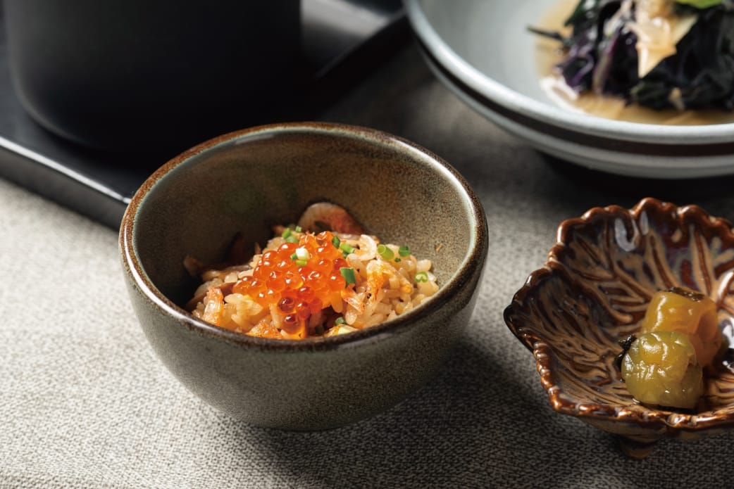 張學良被幽禁於台灣期間,多半是居住在山間,時也會與原住民們有所交流,山林野味便成了他的喜好之一。套餐中的山居好野味這次推出松阪豬,肉片將玉米筍、剝皮辣椒捲入其中,另搭配金桔醬汁、醃漬蕃茄,酸甜又解膩。養生炊飯以櫻花蝦、鮭魚卵、松茸、巴西菇、花菇組成,符合張學良所謂「米與雜糧」的主食吃法。