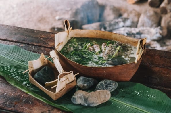 檳榔葉自製餐具 鮮魚石頭火鍋