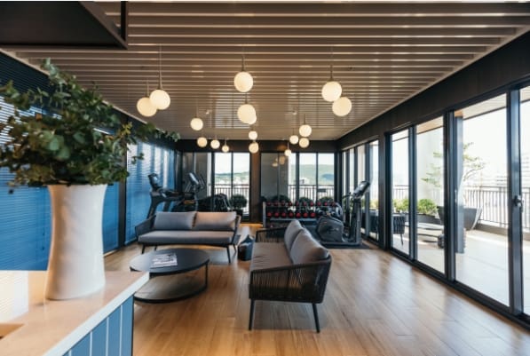 頂樓空間「JÒHŌ KANG」,規劃為交誼廳、健身區、空中花園,視野遼闊、可以欣賞遠處的壽山、高雄的日夜市景,尤其是夕陽西下時最美,坐在戶外沙發區享受當地特色美食,或是運動舒展筋骨,是多麼自在愜意!竭誠歡迎與「JÒHŌ HOTEL」共創港都的美妙時光。