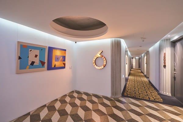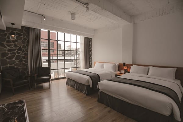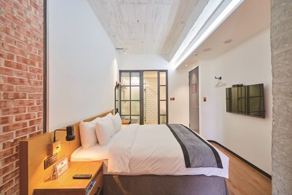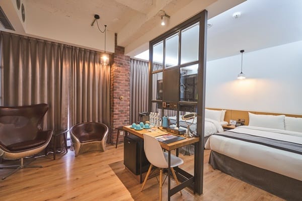 飯店為「臺中市藝術亮點」的店家,提供在地藝文創作者展覽發表,因此每層樓的梯廳可以欣賞不同的藝術創作。房間門口使用CNC車工的房號立體字,刷房卡時,房卡的感應處還會發光。具工業文青風格的客房同樣好拍,房型分為雙人房和家庭房,還有網紅雙人房。
