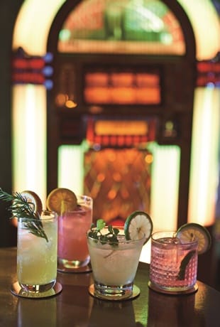 二樓的「Bar No.38」小酒吧是魔力空間,黑色皮椅搭配大紅窗簾,牆上「你有故事我有酒」霓虹燈字閃亮,加上一台JUKEBOX的老式點唱機,播放70,80年代的西洋老歌,整體氛圍很有復古的夢幻感。特別採用英國進口汲取式調酒品牌Frizzenti,國外各大5星飯店御用,不需調酒師、每杯經典調酒品質穩定、猶如現調。經典調酒4款,橘色誘惑Passion Fruit Spritz、粉紅湯尼Pink Gin Tonic、莫吉托Mojito、黛綺麗Strawberry以及臺虎精釀啤酒2款。一杯調酒180元,也可以Room service。鮮酸果味和微苦酒香、沁涼清爽,還有每日驚喜特調,與三五好友共度一個輕鬆微醺時光。瓶裝可外帶,在家也能享受。