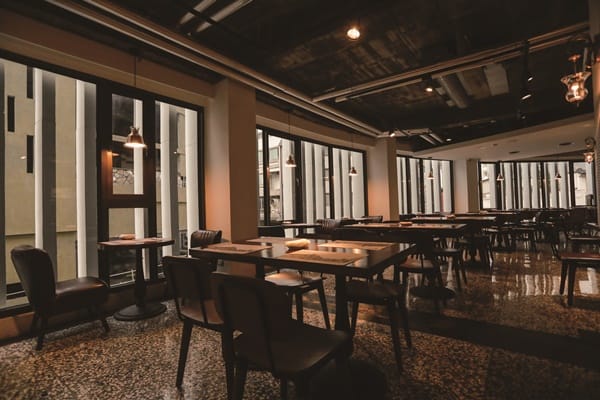 黑色格子框架的落地窗就讓窗景變得很不一樣,保留原有建築構造,舊樑柱、裸露的天花板、紅磚牆、仿舊石牆等,舖陳溫潤的木質地板,唯美的馬約利卡花磚,再巧妙妝點手工打造的牛皮沙發,造型各異其趣的燈座,以腳踏車坐墊製成的牛頭衣架,職人工匠手工鋁製桶與懷舊電話等,充滿在地人文情感與溫度。