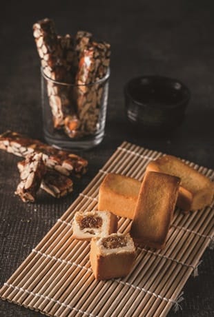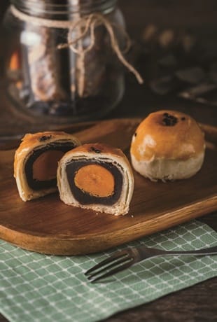 嚴選台農17號金鑽鳳梨,以自然農法無毒栽種,「金鑽鳳梨酥」具備傳統冬瓜餡的甜,又吃得到鳳梨果肉纖維,搭配荷蘭進口的VIV無水奶油的酥皮,香氣十足、微酸甘甜恰到好處,今年也獲得iTQi風味絕佳獎章一星的肯定。需預定、中秋節限定的「金燦蛋黃酥」,使用荷蘭VIV無水奶油製成的層層酥皮,上頭點綴芝麻,奶香十足、清爽不油膩,包覆著鹹香濕潤的紅土鴨蛋黃,還有黑豆和紅豆調和的特調鴛鴦餡,口感滑順、甜而不膩、風味豐富,讓人忍不住一吃再吃的傳統美味。