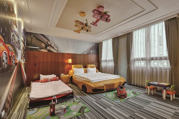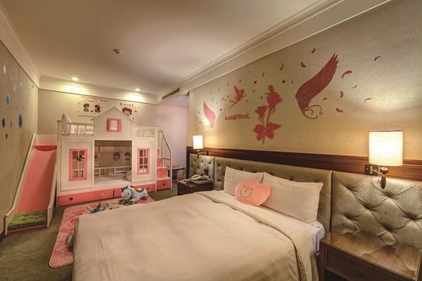 8間親子主題房超搶手,有苗栗吉祥物「貓裏喵」相伴,充滿「桐花綠意」,與鯊魚和海豚一同悠游於「海底幻想」世界,來個「狂野飆速」開著賽車造型床當個車手,或是「穿越侏儸紀」睡在動物造型的小帳篷,乘著海盜船尋找魯夫的「海盜戰記」,搭上太空艙「航向星際」,還有超可愛的「夢幻馬車」、「粉紅城堡」,相信小朋友一定玩瘋了,而大人們可安心放輕鬆,不過親子主題房只能透過飯店官網預定,需要提前預訂。
