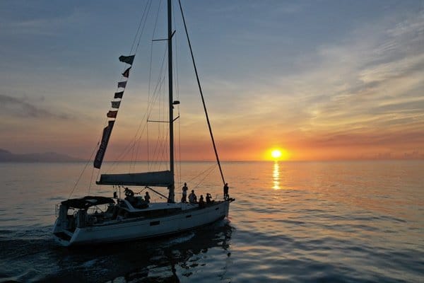 搭帆船的航行感覺更為輕鬆自在,仿佛與遼闊大海融為一體,您可以坐在船頭甲板,站在船杆上擺個美麗Pose當網美照,也可以閒坐船尾放空與大海對話,或是請教船長有機會嘗試開開帆船,而船長也會視海況風況許可揚帆,船艙內部設計有臥室、廚房和浴室,可說是移動的空間美學。而此時,天色漸亮、露出微微橘色曙光,這畫面太美好。