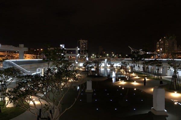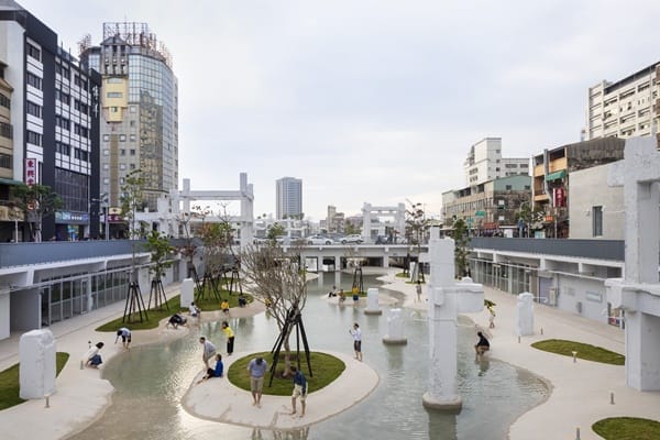 台南的新景點「河樂廣場」是台南市民戲水玩水的好去處。被譽為世界七大令人期待的公園設計,前身為中國城舊址,台南市政府為翻轉都市景觀,邀請荷蘭建築團隊MVRDV與台灣都市里人設計,以潟湖為設計概念,規劃台南市區最大親水公園,除了將原本的地下停車場,改造成採用雨水回收水過濾系統的都市景觀水池,更把已拆除的中國城建築回收再利用,減少新建工程的碳排放,落實循環經濟,此一設計讓改造後的公園可以新舊並存,延續台南市民的童年快樂時光。同樣也是將老舊環河街廣8廣場翻新整闢出的台南環河街廣場,汲取早期台江歷史之「七鯤鯓地形」為靈感,以七顆景石作為鯤鯓意象,到了晚上,還有藝術燈光增亮遊船航線,用金色流域來串聯河樂廣場,現也成為台南最夯觀光遊程。