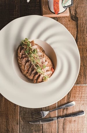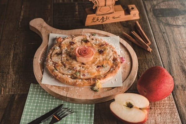 Lucas主廚以西式料理手法,將台灣食材發揮創意,推出新菜色。「豆腐味噌松阪豬燉飯」,將傳統板豆腐混合台灣味噌,再以大蒜、辣椒調味的醬汁,淋上炙燒松阪豬香氣十足,也融入西螺米燉飯,微微辣口感帶點豆腐香,多層次風味很特別。獨家研發的「蘋果甜心Pizza」,8吋拍餅皮,抹上以蘋果、肉桂、焦糖糖漿混和的醬料,再鋪上蘋果片、起司進烤箱,最後飾以蘋果片捲成的玫瑰花形,有Q度嚼勁、酸甜滋味又不會很甜膩。此時來「一顆鳳梨」果汁更是絕配,特選小農契作鳳梨,內裝以柑橘、百香果、鳳梨打成的現榨綜合果汁,喝得到最天然的水果甜味和鳳梨果肉。