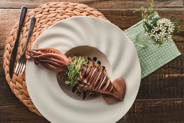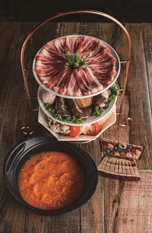 特別推薦經典排餐「哈維斯特香檸奶油鮭魚」,將鮭魚烤過,火候熟度掌握剛剛好,佐以鮮奶油加檸檬汁調配的醬汁,肉質鮮嫩Juicy與櫛瓜、紅椒粒一起吃,夏天清爽口感就愛這一味。「芥香墨魚燉飯」,整尾來自澎湖的大隻中卷細心處理後,包覆以芥末籽與鮮奶油特製醬汁的燉飯一同入烤箱,逼出迷人香氣,墨魚口感Q彈有嚼勁又帶點芥籽醬顆粒口感,忍不住一口接一口,大人小孩都很愛的命定燉飯。火鍋有南瓜牛奶鍋和義式番茄鍋兩種湯底,豐富海陸配料及鮮蔬盤多 使用在地食材,釋放香濃天然鮮甜味好滿足。