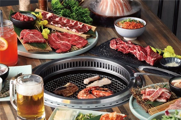 套餐中增加3-4種肉品,肉類總重約22oz∼26oz,主餐皆附吸睛燒肉火山,搭北海道干貝、新鮮草蝦,附餐有豚骨高湯、沙拉、炊飯、甜點飲料等,還提供兩款包肉選擇,生菜葉和墨西哥餅皮,3種開胃小菜,蔥鹽醬、韓式泡菜、醃漬大根和4種醬料,大家可以隨不同口感的肉品,薄片、厚切、角狀及鑽切法,自由搭配出高達96種的新鮮吃法。最推薦自製墨西哥捲餅,使用烤過墨西哥餅皮加微酸辣韓式泡菜以及油花滿布的五花肉,一口咬下多種風味,讓燒肉可以越吃越有趣,平均每人價格只要763元起,絕對是業界最超值的套餐!