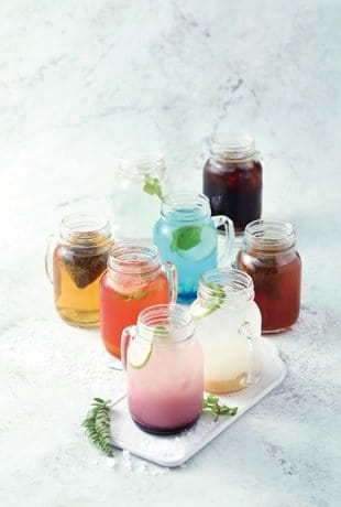 此外,新款飲品有清透藍色的沁檸氣泡飲、充滿夏日風情的草莓芒果氣泡飲、紫色漸層的葡萄可爾必思氣泡飲,豐富繽紛的套餐飲料。也提供三款不同純茶的選擇,增加多款調酒,草莓沙瓦、梅酒沙瓦、highball等,其中以萊姆酒為基底與薄荷葉、檸檬及氣泡水調製mojito最受女性消費者的青睞。