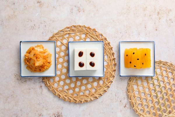 海鮮料理「糖醋鱸魚」,酥炸好整條魚淋上獨門水果風味的糖醋醬,外皮香酥、魚肉鮮嫩,酸甜好滋味。源自北投60年代道地酒家菜,湯品「魷魚螺肉蒜」,融合乾魷魚、罐頭螺肉、排骨及蒜苗的甘甜與鮮味,湯頭濃郁不膩口,湯頭有三味,一滾清二滾鮮三滾甜。加上主食「寶島米糕」及白飯,再來盤民間市場小點「菜燕」,以冬瓜糖、洋菜條熬煮後放涼成凍,讓人勾起小時候的回憶。
