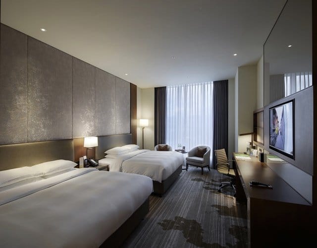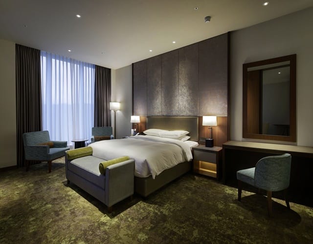 共計有465間景觀客房,時尚簡約風格,空間寬敞自在,不受打擾的靜謐舒適,大面落地玻璃窗一覽山景或城市特色,自然光線灑落讓整間客房更顯明亮,衛浴空間用材講究、潔淨清爽,可自由享用的minibar、無限上網及免費健身房使用。此外,入住行政客房等級以上(含套房)或是全球萬豪集團白金卡(含)以上會員,皆享有位在30樓的行政貴賓廳Executive Lounge的星級餐飲體驗,萬豪白金會員亦可於行政貴賓廳直接辦理入住,攜帶一位貴賓免費入場,處處可見飯店的貼心。