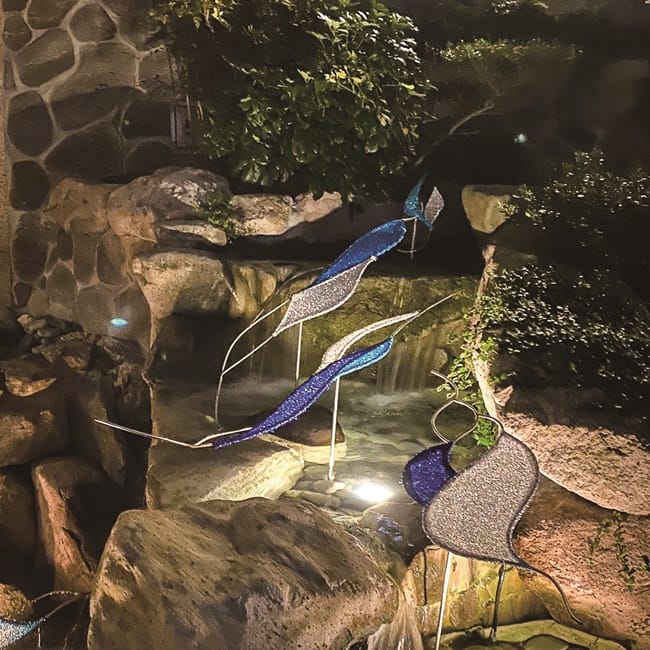 大浴池是北投溫泉博物館最具文化歷史代表性的地方,「過去是泡湯場域,該如何活化又能保有其精神,成為重要考驗。」鍾兆佳表示,大浴池藝術裝置也是每年北投溫泉博物館館慶的重頭戲。今年大浴池藝術裝置以「蘊藏」為題,結合北投豐富的自然資源──山、泉、石,並大膽結合藝術家Aguce的創作,讓文化底蘊融入溫泉產業、走進飯店,也表達北投人除了開發外,對於上天賜予北投的恩澤、百年古蹟,以謙卑的態度守護,作為感謝。鍾兆佳提到,北投溫泉博物館的來客比例25~30%是外國遊客,肩負了讓國際認識北投文化的重要使命,今年因新冠疫情的影響,遊客銳減,周邊業者經營也受到重大影響,「不只有溫泉博物館,大家一起壯大,北投才會更好。」