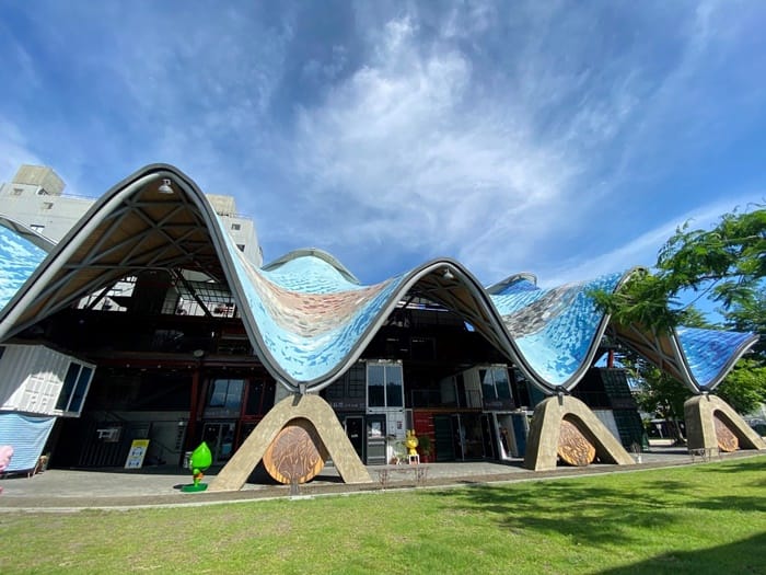 距離台東轉運站走路約2分鐘,位於鐵花村徒步區的「台東原住民文創園區」簡稱「TTstyle原創館」,不僅是台灣唯一以原住民文創落為主軸的園區,更是台東市區最特殊的一個景點。曲線型建築外觀以波浪天頂設計,象徵台東的山與海,以馬賽克拼貼出蔚藍洋流的波浪,大家又稱它為「波浪屋」,又整體結構以50個貨櫃、鋼筋打造四層高的建築而成,色彩鮮明深具個性特色,成為台東原創新聚落,夜晚燈光投射下更具迷人氛圍,也是IG 熱門打卡景點。