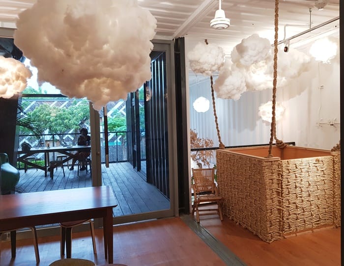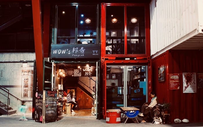 「Wow’s邦查」是一群來自成功的阿美族原民所創,取自阿美族語,有「人群、同族」之意。室內設計呼應整體貨櫃屋的概念,二樓空間以工業風格混搭,為了讓每位客人找到屬於自己最喜歡的位置,因此座位有各種不同的規劃,有適合一人沉思的月亮椅,兩個人甜蜜相伴同坐,三五好友的聚會,還有一樓戶外的用餐區,每個人都可以在此找到最舒服的一隅。