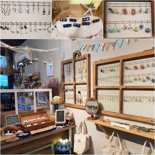 小魚常去台11線的海邊撿拾天然素材,如漂流木、石頭、珊瑚及貝殼,再結合鋁線、銅線發揮巧思及創意,因為是以她當下的靈感去創作,所以每件作品皆是獨一無二,很難再有一樣的,格外值得帶走珍惜。店裡以夾式耳環居多,其中夫婦倆辛苦研究的蝸牛耳夾,更獲得設計專利證號,戴一整天也不會痛。歡迎訂製,挑選自己喜歡的素材請小魚創作,你就是唯一。