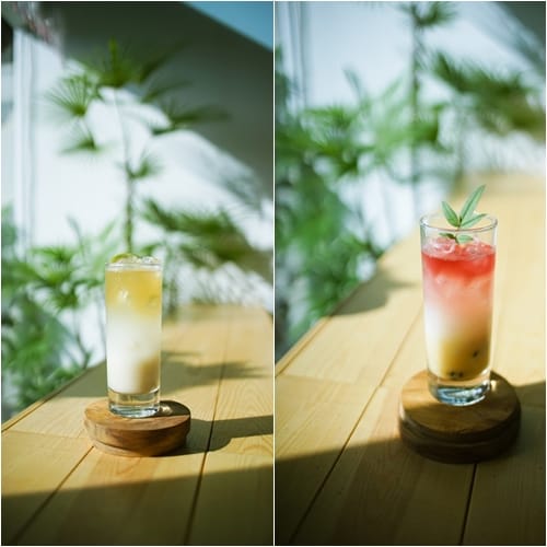 空間很美,一樓浮空相思樹衍生山蘇形塑森林意境,並透過文字圖片,介紹台東品牌。二樓如置身雲層裡,可以體驗虛擬實境360度熱氣球VR,超真實感受升空的感覺。連接戶外平台,隨心情來杯「野室植萃調酒」;有點喜歡你、最近開始懷疑人森,融入「尚德村」的香草、原民植物白刺蔥、特產糯米酒等。海哭的聲音使用「造福」檸檬冰棒結合綠島海鹽,女兒不懂酒以「女兒不懂茶」的紅屋龍茶為基底……,慢慢品飲,再來一分荖葉貝果,品味屬於台東的緩慢時光。