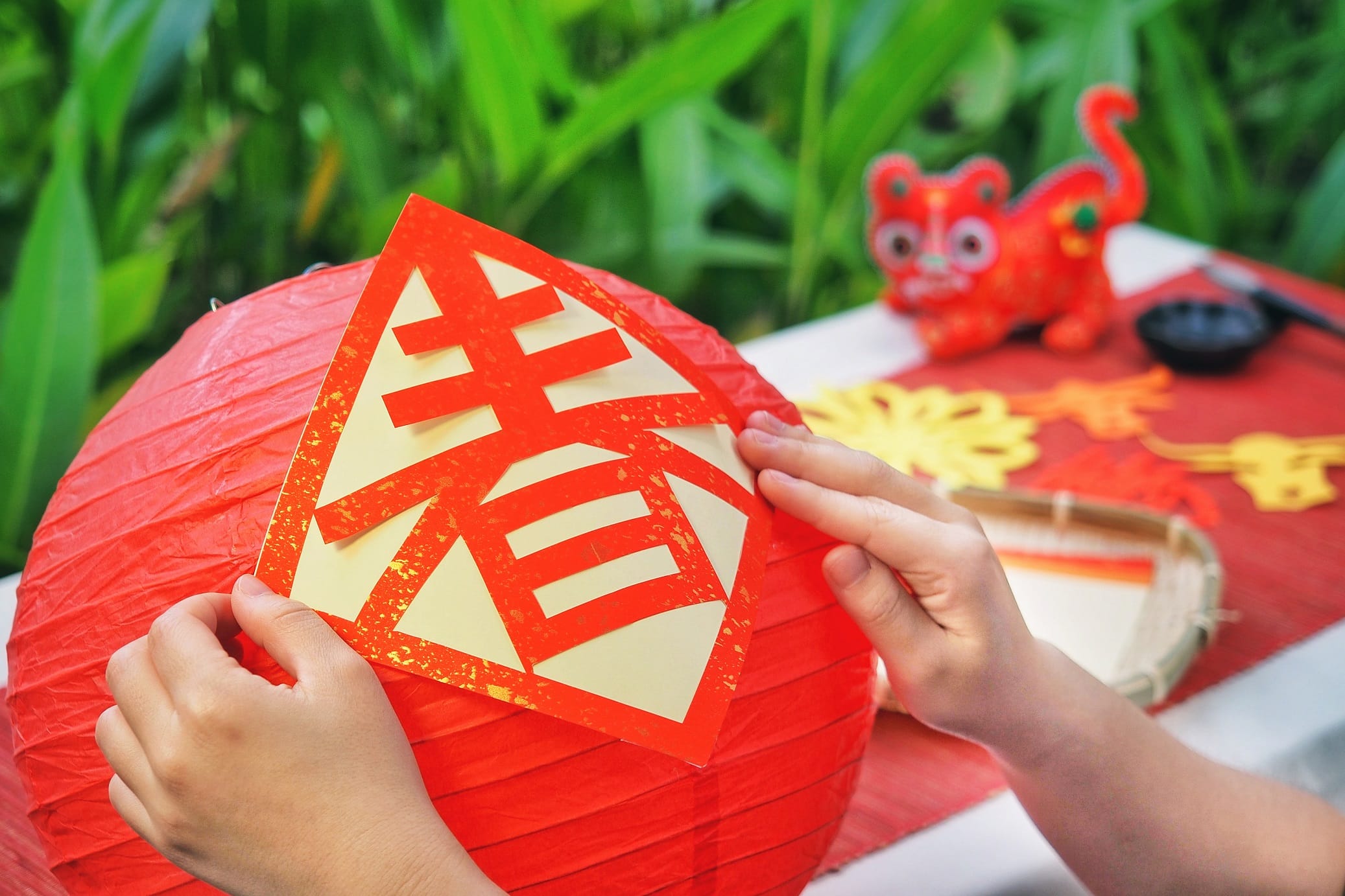「剪春繪燈籠」活動分成早上(9:30-11:30)與下午(14:00-17:00)兩個時段,在館內泳池邊的西式涼亭舉辦。在古代,老師會將燈籠送給學生,祝福前途一片光明;而將民間故事繪於燈籠上,教導子女認識文化,具有薪火相傳之意。一個家庭將得到一組燈籠材料包,將剪好的春字貼在燈籠上,亦可用毛筆寫下祝福的詩句。希望能藉由家人之間協力完成,長輩能將祝福的心意傳達給兒女子孫,增加家人間的互動回憶。燈籠製作完成可帶回家作紀念,也可高掛於西式涼亭上,晚間時分飯店人員會將燈籠點亮,旅客可欣賞夜晚被燈光點綴的泳池,感受春節的喜氣氛圍。