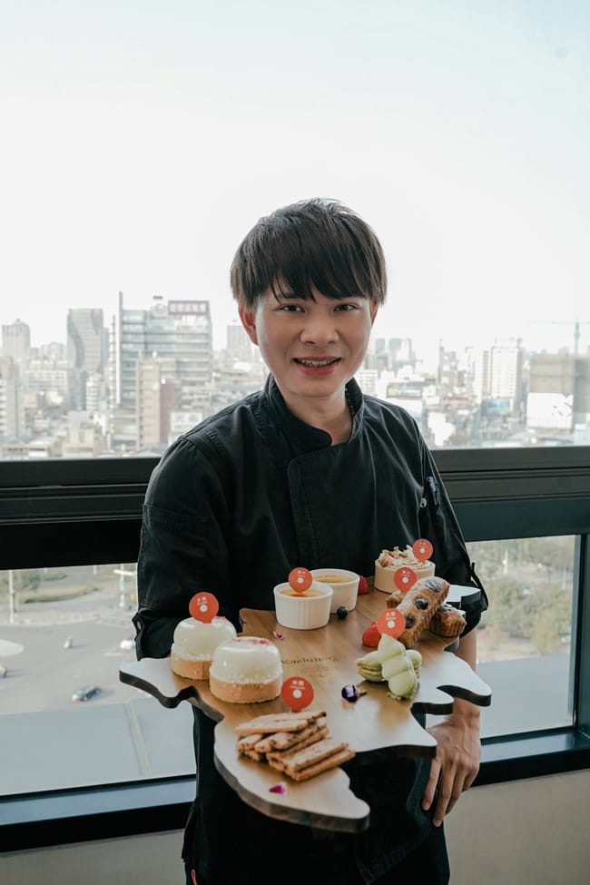 將高雄在地風土食材融入西式甜點,像是「大寮」有機毛豆製成經典馬卡龍、「大樹」有機金鑽鳳梨製成白乳酪鳳梨塔,以及選用「香蕉王國」之稱的「旗山」巧克力香蕉製成香蕉蛋糕等。期望以新鮮健康的在地食材,製作出每一口都輕盈且富層次感的精緻甜點,讓吃的人安心享用,也可為臺灣農業盡一份心力,期許能吹奏出屬於港都的特有甜點文化!