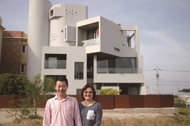純樸的後灣小漁村,坐擁美麗月形海灣,觀光客不太多,靜得可以清楚聽見海潮聲與鳥叫聲。「後灣發宅」的主人發哥與發嫂,曾經是後壁湖「光現旅宿」的合作經營者,因為愛上這裡近山近海的自然美景,遂全家移居於此自地自建,邀請得到台灣建築獎的知名建築師徐純一操刀,從溝通到建構蓋好,花費4年多時間心力,終於完成夢想中的清水模之家,更樂於與每位旅客分享。