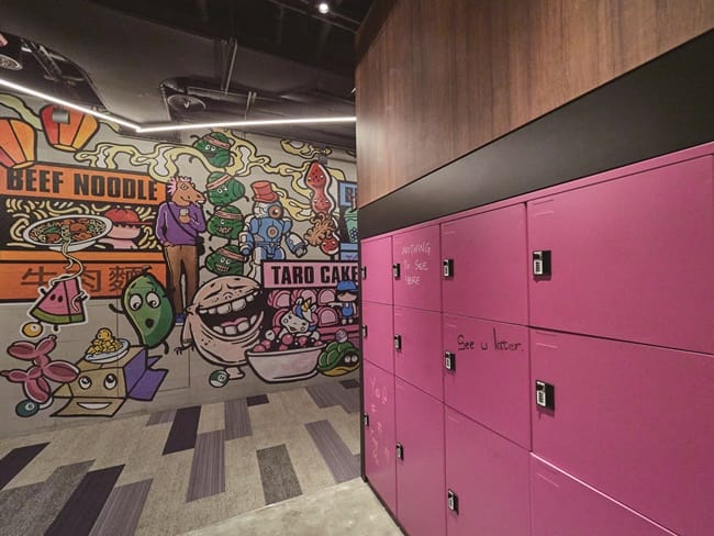 整體空間設計不但融入台中在地特色元素,更邀請美國籍視覺藝術家Eric Charles Olmstead,將公共空間當作創作畫板,彩繪塗鴉藝術展現庶民後街文化,目前完成的現場創作於三個區域。一樓舞台旁上樓的夾層空間為閱讀沙龍,Eric在此彩繪台中市花「山櫻花」作為主視覺,背景再以台中景點的相關剪報交錯堆疊呈現,為視覺注入鮮明亮點,帶給賓客驚艷感受。二樓包括會議室及健身房等公共設施外的整片長廊牆面,Eric以「Let’s Go To The Night Market(來去迺夜市)」為主題,以動漫風格表現台灣著名美食及當地人的熱情活力。同樣位於二樓自助洗衣的公共區域柱牆,Eric最早完成的作品,以「旅行」時護照上的出入境戳章發想,創作出一個個代表台中著名景點,如高美溼地、大都會歌劇院、科博館等個性化主視覺,夾雜機票、門票及行李條等相關元素,在酒店3F∼17F的每一層梯廳入口,也可以看得到,讓外國旅客藉此認識台中的人文風情,賓客每次入住時有不同的驚喜與趣味感,更成為大家最喜歡的取景拍照處。