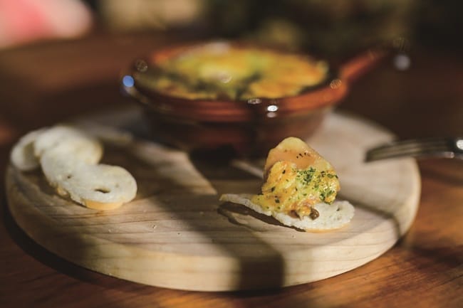 第一道餐點為法式焗烤田螺,利用起司、蒜香、白酒來調和鮮味,附有香脆麵包片搭配醬汁與馬鈴薯泥,這道菜與路易.佳鐸的夏多內白酒搭配,清爽的酒體帶有些許檸檬酸勁,石頭的鹹味、礦石的風土也有隱約的襯托。接著是爽口的時令沙拉,佐清新的油醋醬料,絲毫沒有過重的負擔感。湯品選用了蘑菇濃湯,冬季特別適合來一碗濃郁的奶油蘑菇湯,這也是法國人冬天必備的經典料理。主菜為紅酒燉牛舌,紅酒燉牛肉(boeuf bourguignon)算是最經典、最出名的法國料理之一,在WINE-derful 享用這道招牌餐點時,牛肉選用了特定部位——牛舌,雖然製作過程相當費工,尤其牛舌的處理需細心刨去舌苔,但Henry仍堅持選用牛舌就是看中了它的獨特,牛舌的前端較為Q彈,後端則是偏軟嫩,可同時品嚐到兩種不同口感。牛舌與蔬菜、紅酒在細火燉熬了六至八小時之後十分入味,醬汁濃郁而香氣四溢,底部鋪設馬鈴薯泥,呈現最道地的法國味道。以路易.佳鐸的黑皮諾來佐餐,富含櫻桃等紅色果實的香氣,且不會喧賓奪主,用來凸顯餐點相當適宜。最後以巧克力蛋糕做為餐敘的完美句點,宴席間充滿著對彼此的祝福,2021願是平安無事的美好一年。