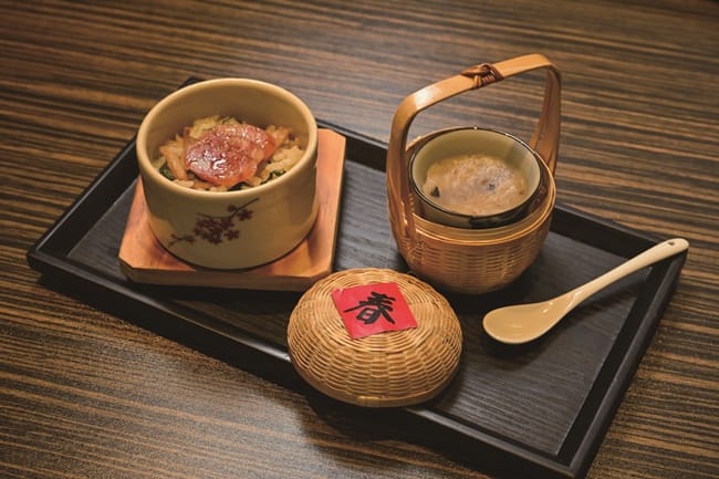 「料理精緻化除了食材及烹調手法,視覺上擺盤、配色,甚至挑選特殊食器,讓用餐更具儀式感,符合當下氛圍。」象徵好彩頭的蘿蔔糕,少帥禪園餐飲團隊更別出心裁,以小碗蒸製後放入造型迷你的籐籃中,小巧可愛,蓋子上也貼有春聯,充滿濃濃年味。