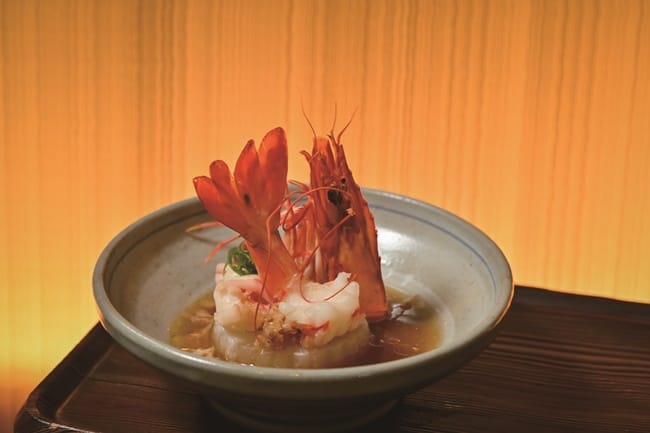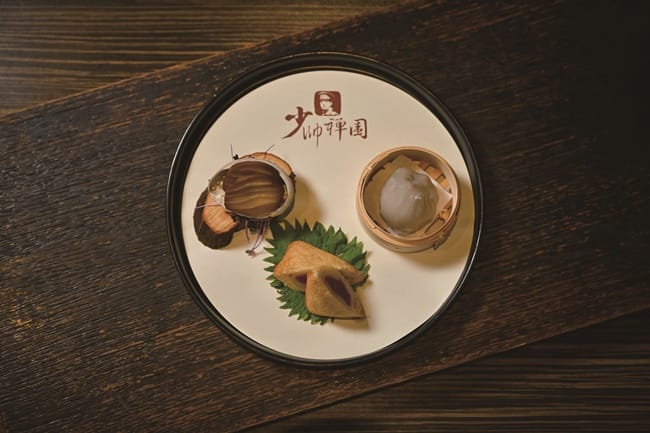 以豐沛海味率先登場,和風冰捲清新爽口,磯煮南非鮑更是整顆上桌,展現豪邁氣勢,搭配滷製鮑魚時的湯汁作成果凍狀結晶,原汁原味的甘美與彈牙鮑魚融於口中。此時正是烏魚肥美之際,草蝦製成的蝦鬆搭配蔬菜和油條,烏魚子添年味,讓脆、鮮、鬆三味一體,蔬菜補充了水分,平衡又飽口。招牌幽禁歲月百歲湯以金華火腿與老母雞為湯底,燉煮出自然鹹鮮風味,「堅持不加糖、鹽,萃取食材本身的精華為烹調宗旨。」花膠、竹笙、雞腿、干貝、娃娃菜、花菇⋯⋯Henry細數著湯頭中的材料,年菜套餐的湯底還加了南瓜一味,入口後清爽回甘,更多了南瓜自然香甜及金黃色澤,抿一抿嘴唇,殘留著令人意猶未盡的黏口膠質。「以往湯品都是最後才上桌,考量年節期間氣溫較低,所以調整順序,吃完冷前菜之後可以馬上暖暖身體。」魔鬼藏在細節處,完美體現了少帥禪園餐飲團隊真誠款待的心意。