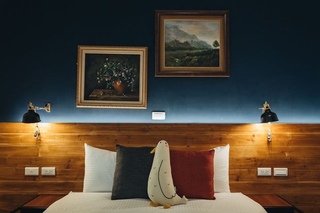 每棟渡假別墅間都是獨立的民宿,其中一棟飾以靛藍色外觀的是「沉靛旅宿La Casa Indaco」,民宿主人Henry說取名「沉靛」,「靛」就是代表沈穩的靛藍色,「沉靛」音同沉澱之意,就是希望每位旅客來這裡能夠沉澱心境、自在放鬆。Henry發揮設計所長,將整體空間以靛藍色為基調,呈現工業風主題,再搭配精心佈置的家具與燈飾,一樓餐廳牆面,「Blues藍色隧道」精心繪製南島海洋風情,也是很適合取景的網美牆。