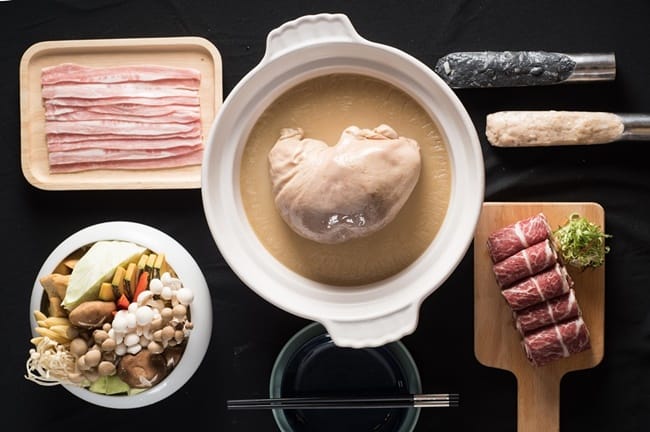 台北六福萬怡酒店旗下粵亮廣式料理將於2月3日上新菜,推出「花膠三品鍋」,用台灣經典手工菜「雞仔豬肚鱉」手法,創意展現粵菜傳統名湯「胡椒豬肚雞」風味,將高達6顆鮑魚及粵菜必備的花膠放入土雞中,再以豬肚包覆,與燉煮8小時的白胡椒濃湯底一同煲煮,喝起來溫順厚實,胡椒香也讓人越喝越唰嘴,為驅寒暖胃最佳聖品,額外再提供蔬菜盤、美國無骨牛小排、手打墨魚漿與手打蝦漿等,當成火鍋般燙熟食用,吃起來最為新鮮多汁,適合4~6人共享,每份3,980元+10%。