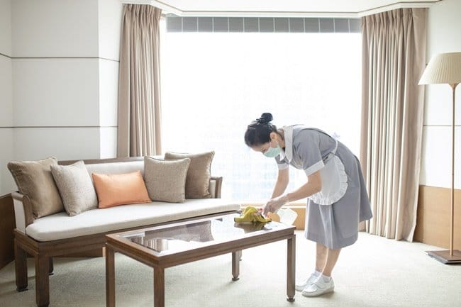 「集團衛生安全官」將清潔與衛生工作分為客房、餐廳、公共區域、以及後場四大領域,以台北晶華酒店為例,客房部分除了設置有「紫外線高效能消毒機」進行所有客房鑰匙的消毒工作,確保交到每一位房客手裡的鑰匙都安全無虞;客房內的深層清潔也將延續至每房退房後、隨即更換及消毒空調的「出風口濾網」,為入住房客的空氣清潔把關。對於即將入住的客房,房務部門也會以醫療級的「紫外線消毒燈」進行照射消毒後,始提供貴賓入住。而全館的服務資訊以及客房餐飲菜單…等,也全面升級為免翻閱的「客房指南電子化版本」。完成所有的客房清潔工作後,會再依照此次確認出的「10大消毒熱點」、包括開關、把手、觸控面板、遙控器、電器…等高頻率接觸表面進行清潔強化。