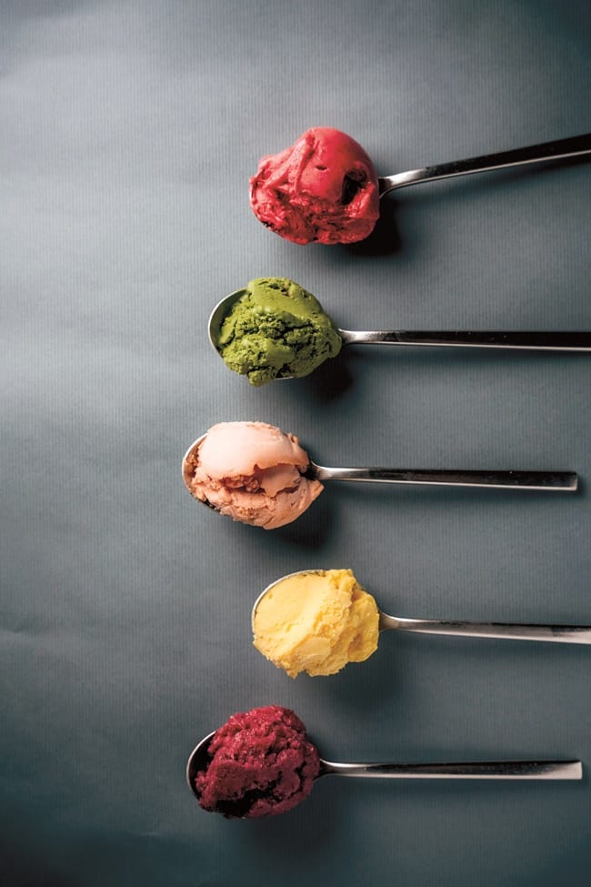 美式、法式冰淇淋乳脂肪都在12%或13%以上,所以吃慣了這裡的冰淇淋,反而會覺得美式、法式冰淇淋有點油而會吃膩。店家堅持用天然及當季的水果食材,無添加香料、香精,紅心芭樂、抹茶白巧芝麻、綜合莓果、熱帶水果、草莓牛奶共有24種口味,依季節而更換,冰涼爽口、細緻綿密,沒有加牛奶的是雪酪,有10幾種口味,對牛奶敏感者可放心享用。